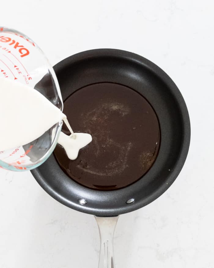 For a thinner and runnier caramel sauce, use a 1:1.5 sugar to cream ratio.