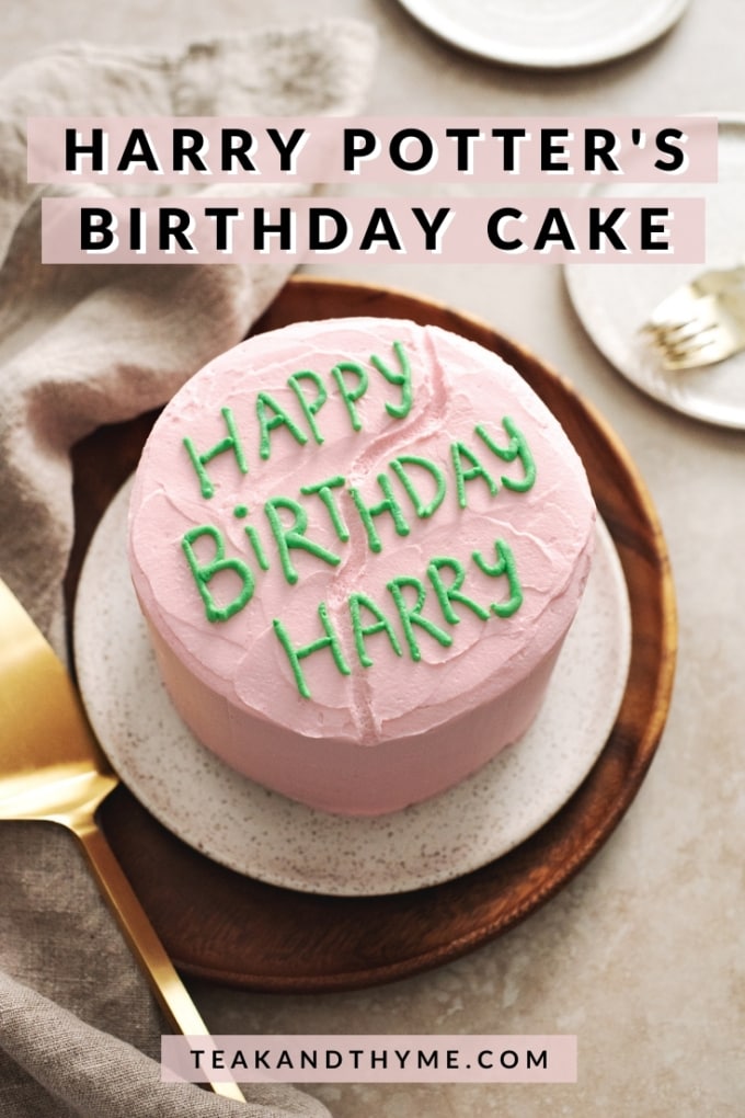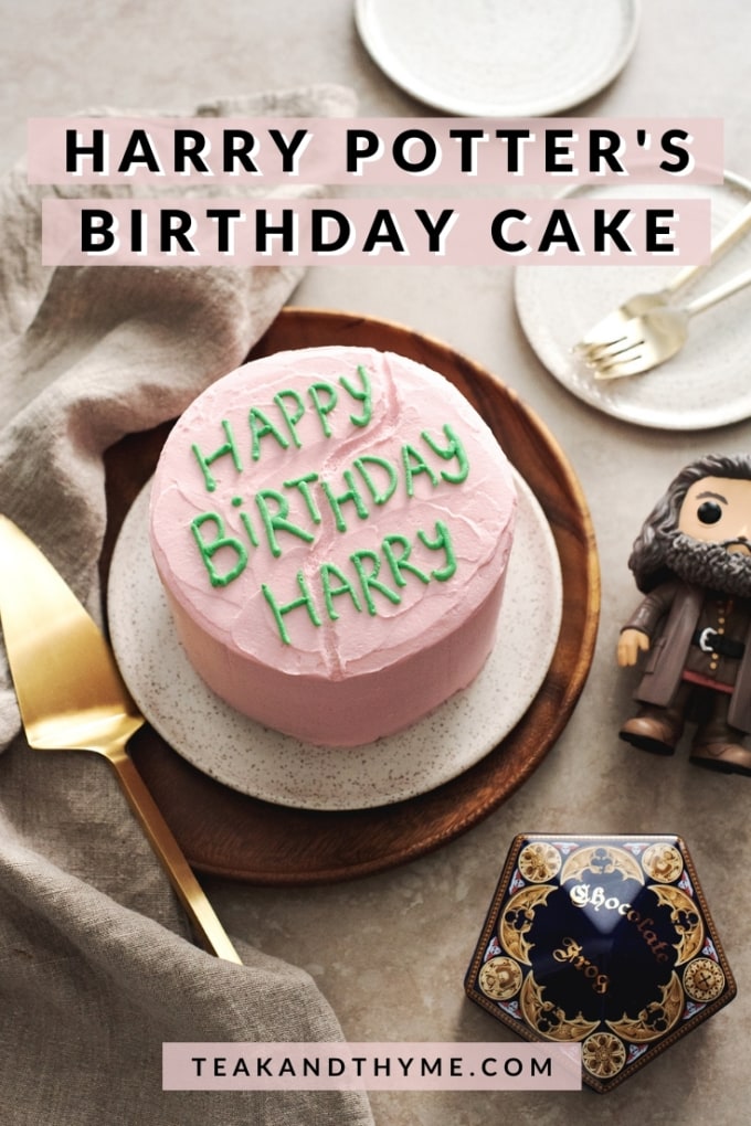 The book's description of the cake also never mentioned the colour of the cake, only the green icing. I loved the movie's rendition of the pink frosting but with the book's spelling. And that's how I ended up with this version of Harry's cake!