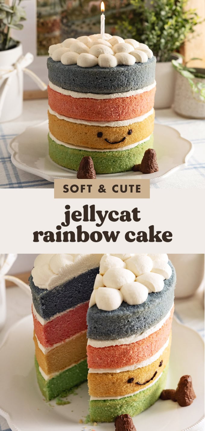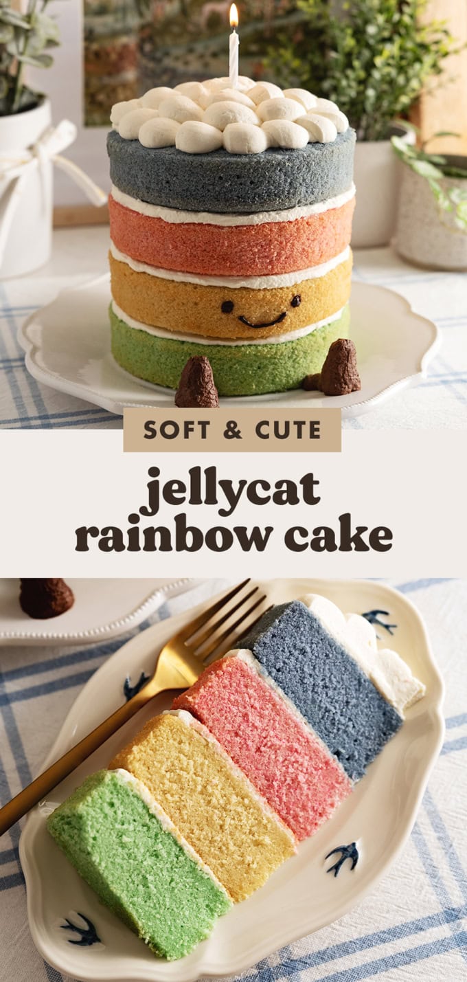It's just as cute as the original Jellycat birthday cake but with extra colourful flair. This is a simple cake recipe, focused on capturing the look of the stuffed toy, but you can add different fillings, jam, or fresh fruits in between the cake layers to change up the flavour and make it your own.