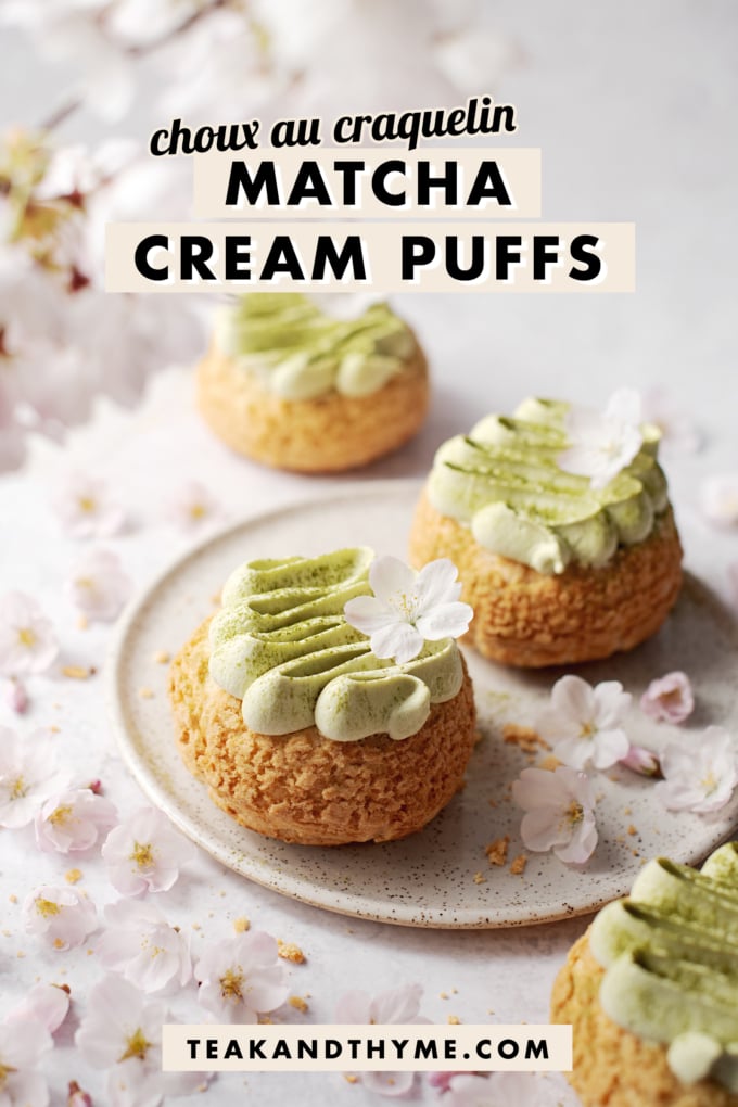 These blooms inspire the floral flavours and Japanese flavours and textures in the kind of desserts I crave, including these matcha cream puffs, with their green tea flavour and dreamy cream filling.