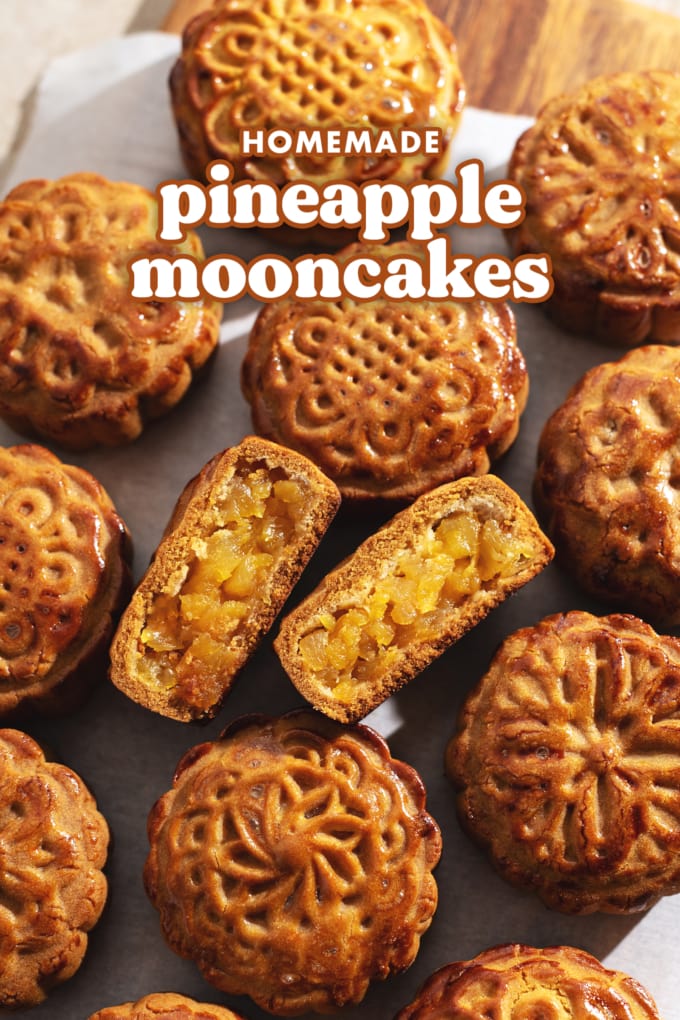 These pineapple mooncakes are made with a baked mooncake crust and filled with jammy pineapple filling and salted egg yolks. They're a fruity twist on a traditional mooncake that's perfect for Mid-Autumn Festival or Moon Festival!