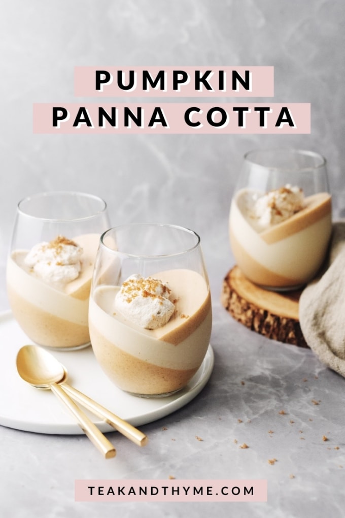 I never thought I would find a dessert that I preferred more than a classic pumpkin pie. Then this layered panna cotta came along and stole my heart! It's a beautiful no-bake alternative for when you want something easy yet decadent. If you're making it layered in a glass like I've done here, it will take a bit of time waiting for it to set between layers but the end result is so worth it.